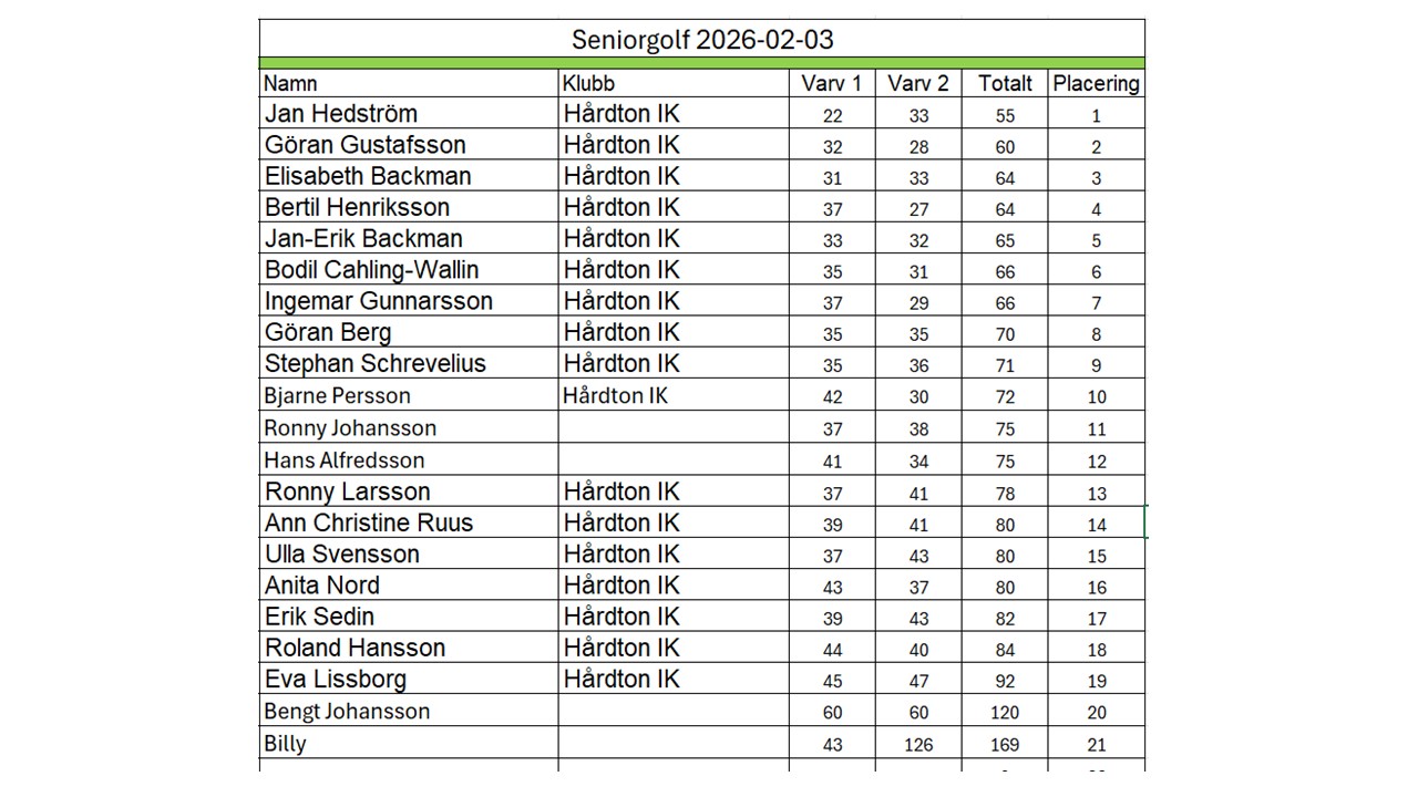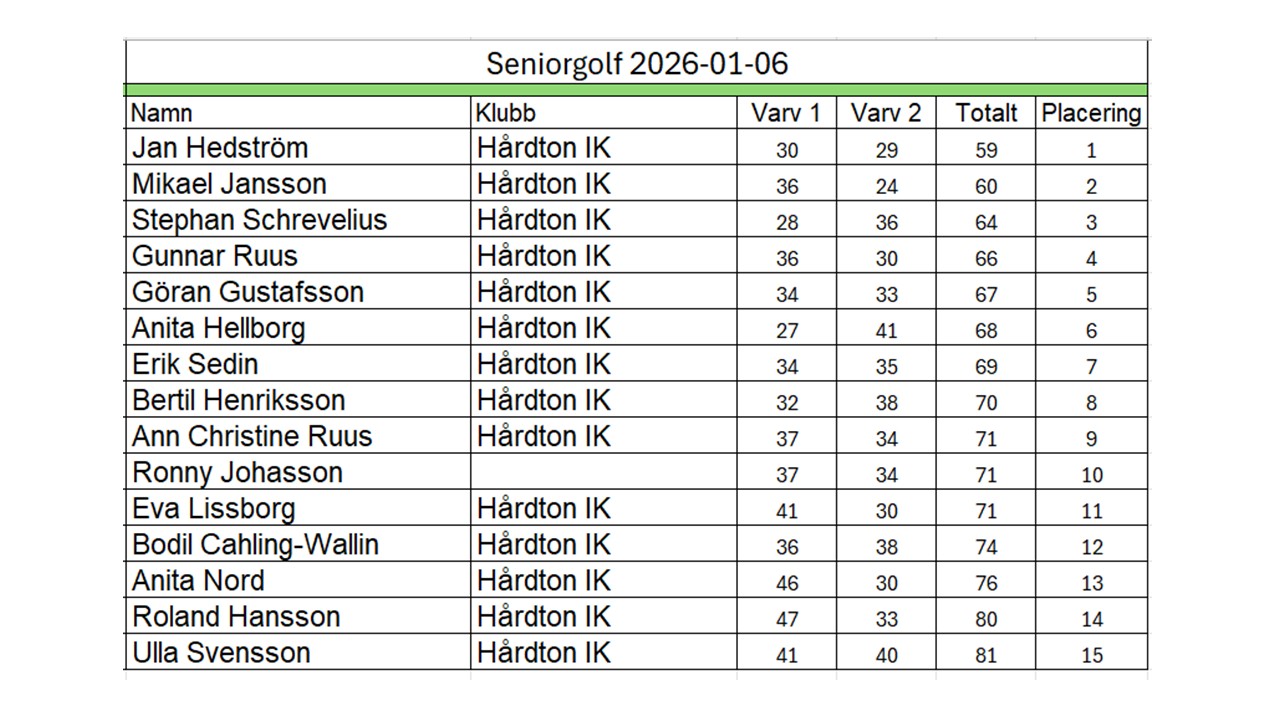 Seniorgolf 2026 Resultat 2026-01-06Resultat 2026-01-13Resultat 2026-01-20Resultat 2026-01-27Resultat 2026-02-03Resultat 2026-02-10
